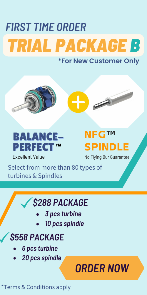 Select the Package* Trial Package B- Turbine & Spindle $288 for 3pcs Turbine($57.60/pcs) & 10 pcs Spindle(11.50/pcs)$558 for 6pcs($55.8/pcs) & 20 pcs Spindle($11.20/pcs)